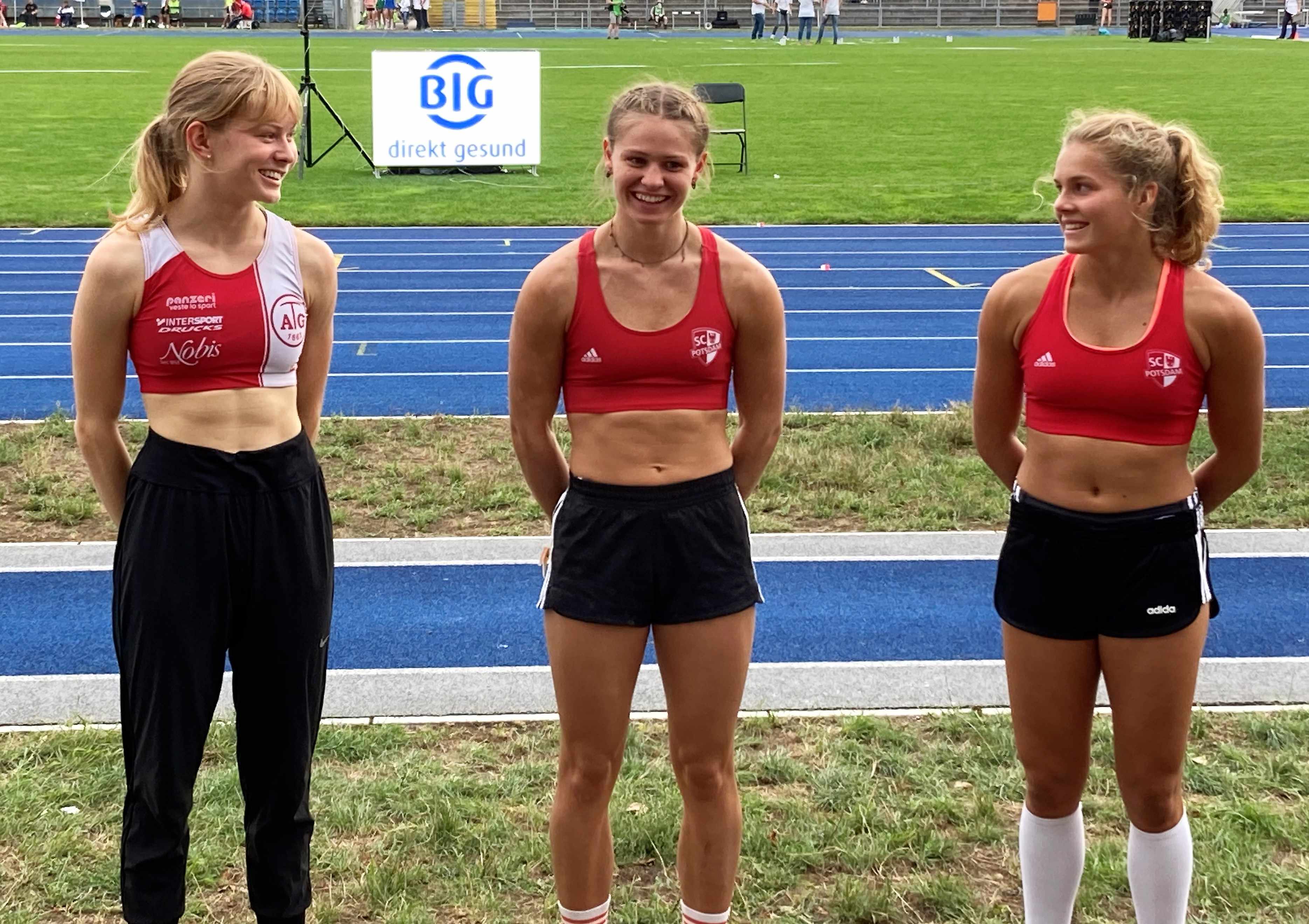 Auch für die nächste Höhe (4,05m), die zugleich neue PB bedeutet hätte, wurde der härteste Stab gewählt. Ganz knapp fiel die Latte, auch wenn Coach Wolfram und auch der anwesende Landestrainer Marvin Caspari sicher waren, dass mit einem noch härteren Stab mindestens auch diese Höhe noch möglich gewesen wäre. Danach machten die beiden Potsdamerinnen Moana-Lou Kleiner und Leni Freyja Wildgrube den Titelkampf unter sich aus, den Leni mit 4,25m dann für sich entschied.