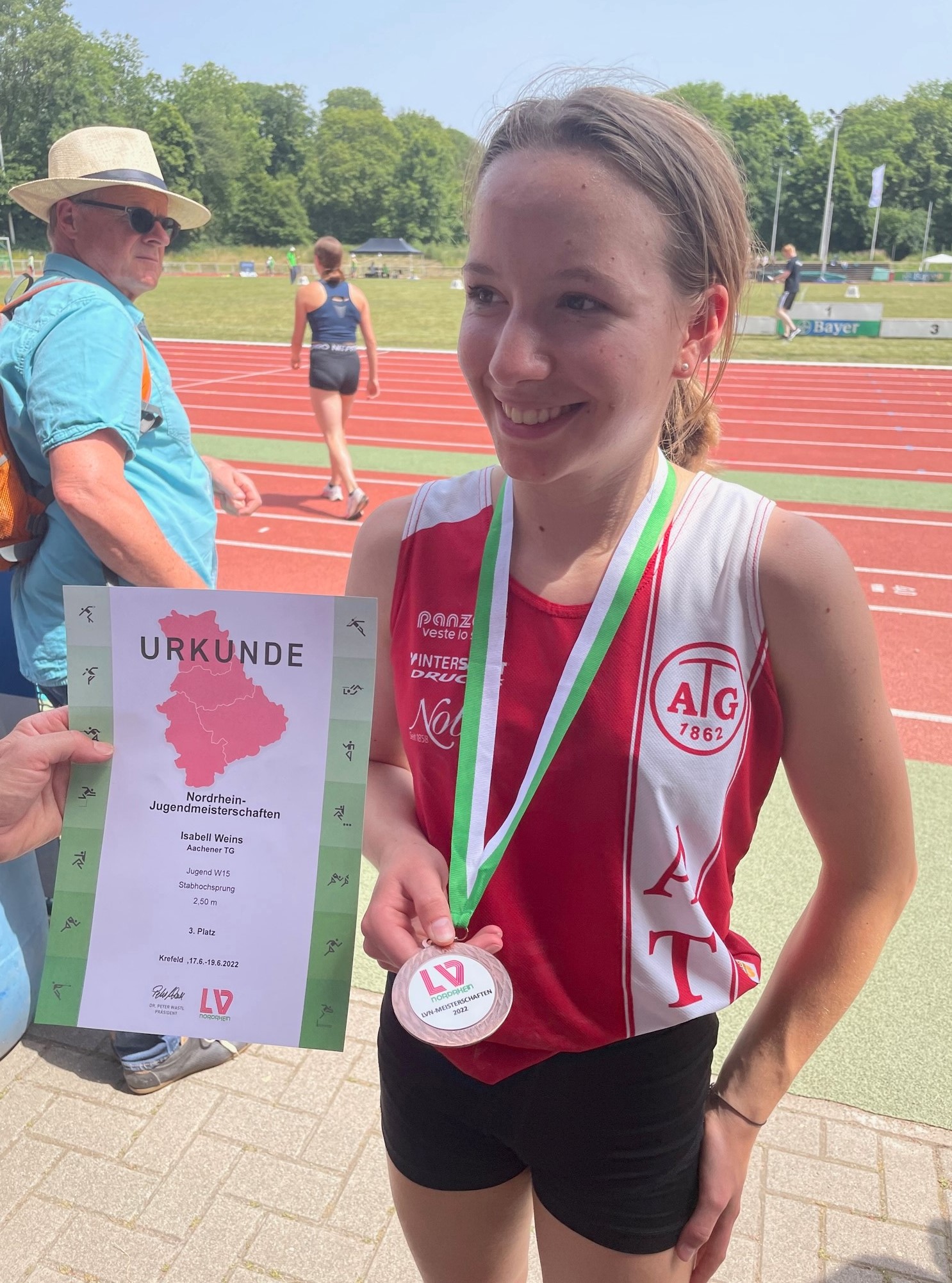 Die Hauptsaison neigt sich den Ferien zu und so fanden am langen Fronleichnam Wochenende die Jugendmeisterschaften des Landesverbandes Nordrhein statt. Fast schon traditionell im Covestro Sportpark zu Krefeld. Auch einige ATG Jugendliche befanden sich unter den Qualifizierten. Bei auch durch die Pandemie bedingt weiter schrumpfenden Teilnehmerfeldern eine große Auszeichnung für sich!